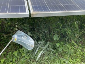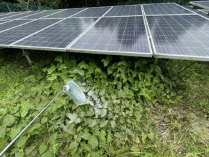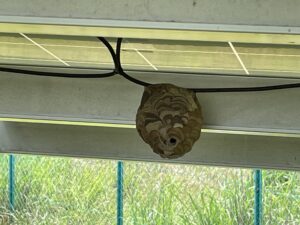 3枚目の画像は除草作業中にソーラーパネル下で見つけた蜂の巣です。