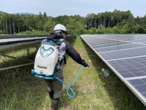 除草剤を使用することで地面下の茎や根まで枯れるので、発電施設内を長期間綺麗に保つことができます。