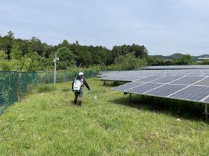 この太陽光発電所は年間除草管理でご契約をいただき、草木が伸びる3月から11月の期間にて定期的に3回除草作業に入らせていただいています。
