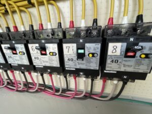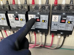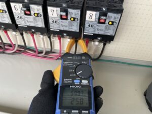 復旧後には電流測定器を使い正常に電気が流れていることを確認させていただきました。