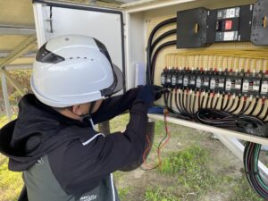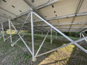 定期点検ではフェンス状態やソーラーパネル破損の有無、固定状況など遠隔監視モニターではわからない部分もしっかり目視点検させていただきます。